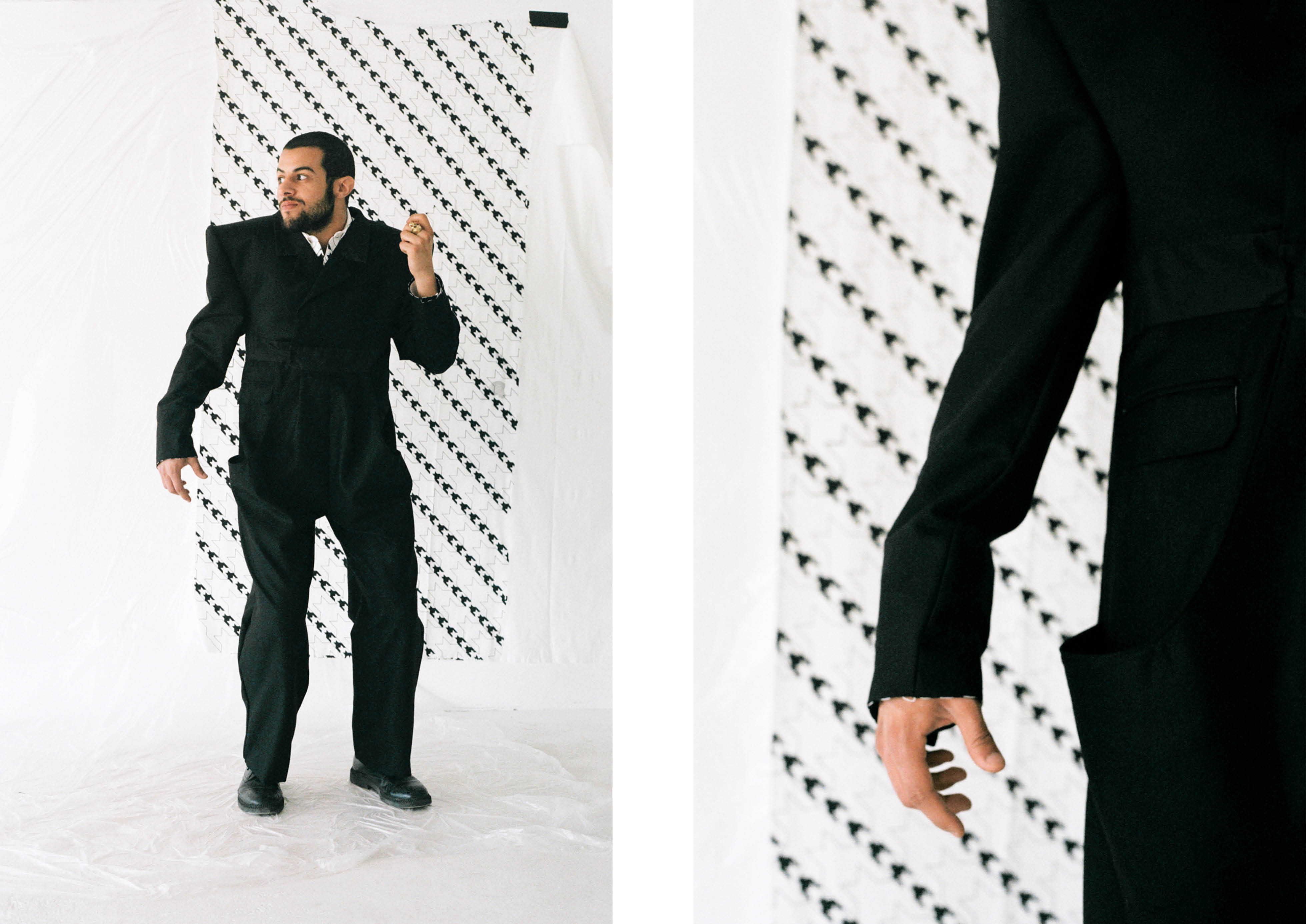 —Description: Graphic design and photography for Souvenir, a 3rd year menswear collection for La Cambre Mode[s] SHOW 2018. This collection draws its strength between the Wallstreet's tailor-made suit and the unisize clothes wear by the children who works in the mines.